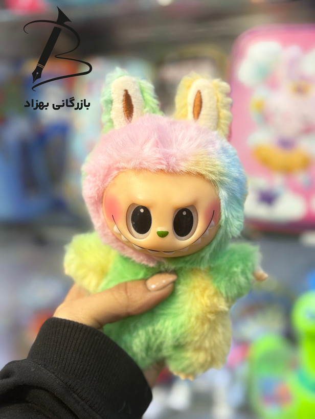 عروسک لبوبو رنگارنگ با طرح شاد و رنگینکمانی، انتخابی جذاب برای هدیه دادن به کودکان و نوجوانان است.