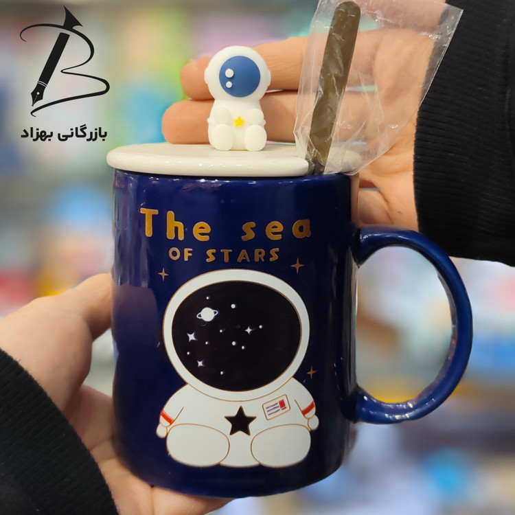 ماگ سرامیکی طرح آدم فضایی درب دار