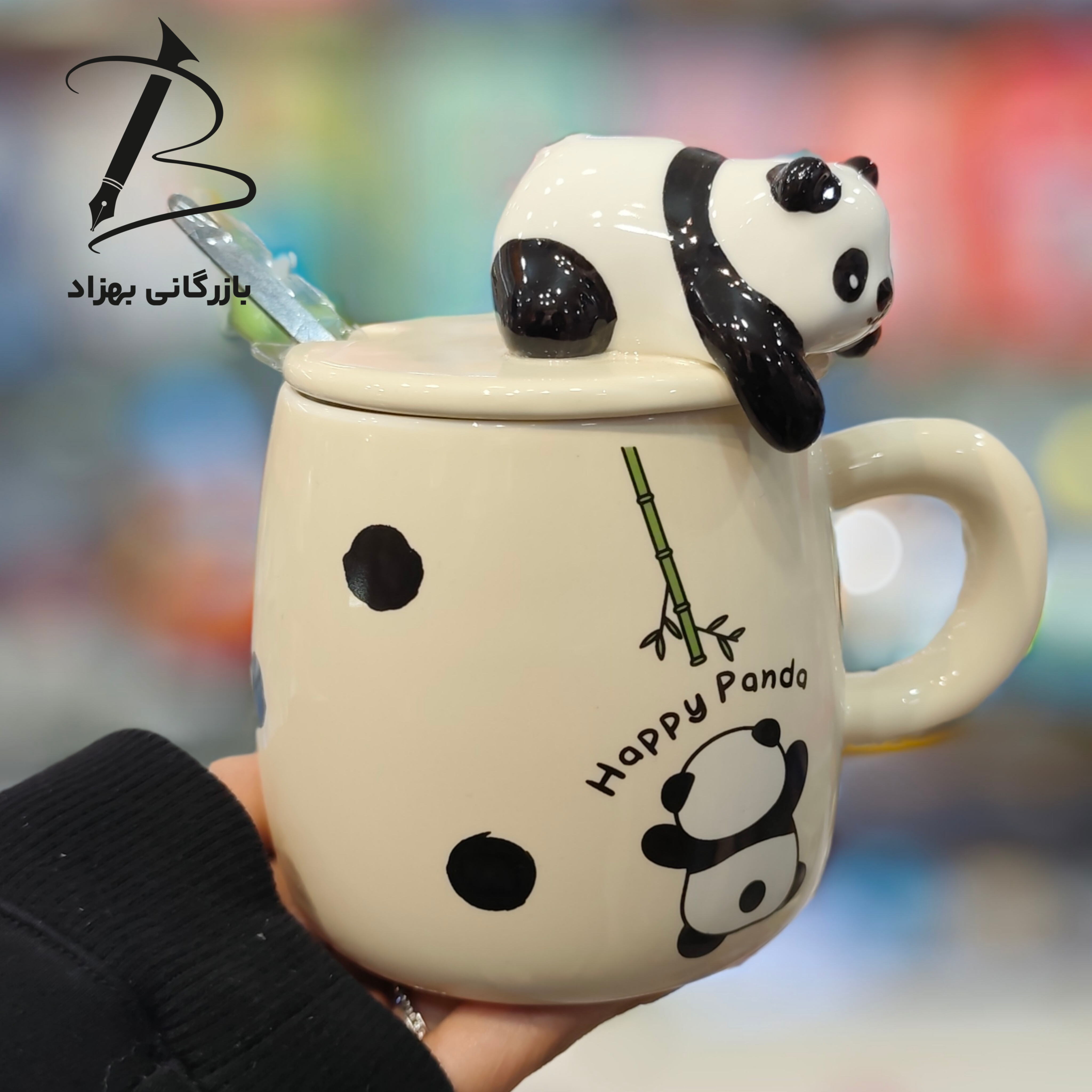 ماگ سرامیکی درب دار طرح پاندا مادر و بچه
